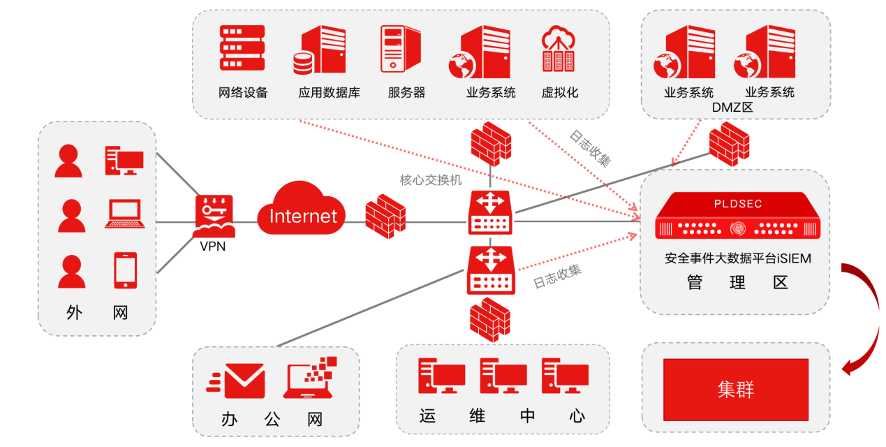 iSIEM fully considers the actual situation of various customers, relies on the good scalability and scalability of big data architecture, and can be configured independently to meet the needs of small networks, or distributed and clustered to meet the needs of large networks.