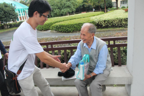 对于我们的到来,老人们意外之余更多的是惊喜。给我们印象最深的是一位瘫痪在床的徐爷爷,9月21日是他95岁的生日,当护工在他耳边不断地重复着我们的祝福后,老人明白了我们的来意,虽然已无法开口说话,但当我们与老人双手紧握的那一刻,从徐爷爷的眼神中流露出的是满满的感动与欣慰。