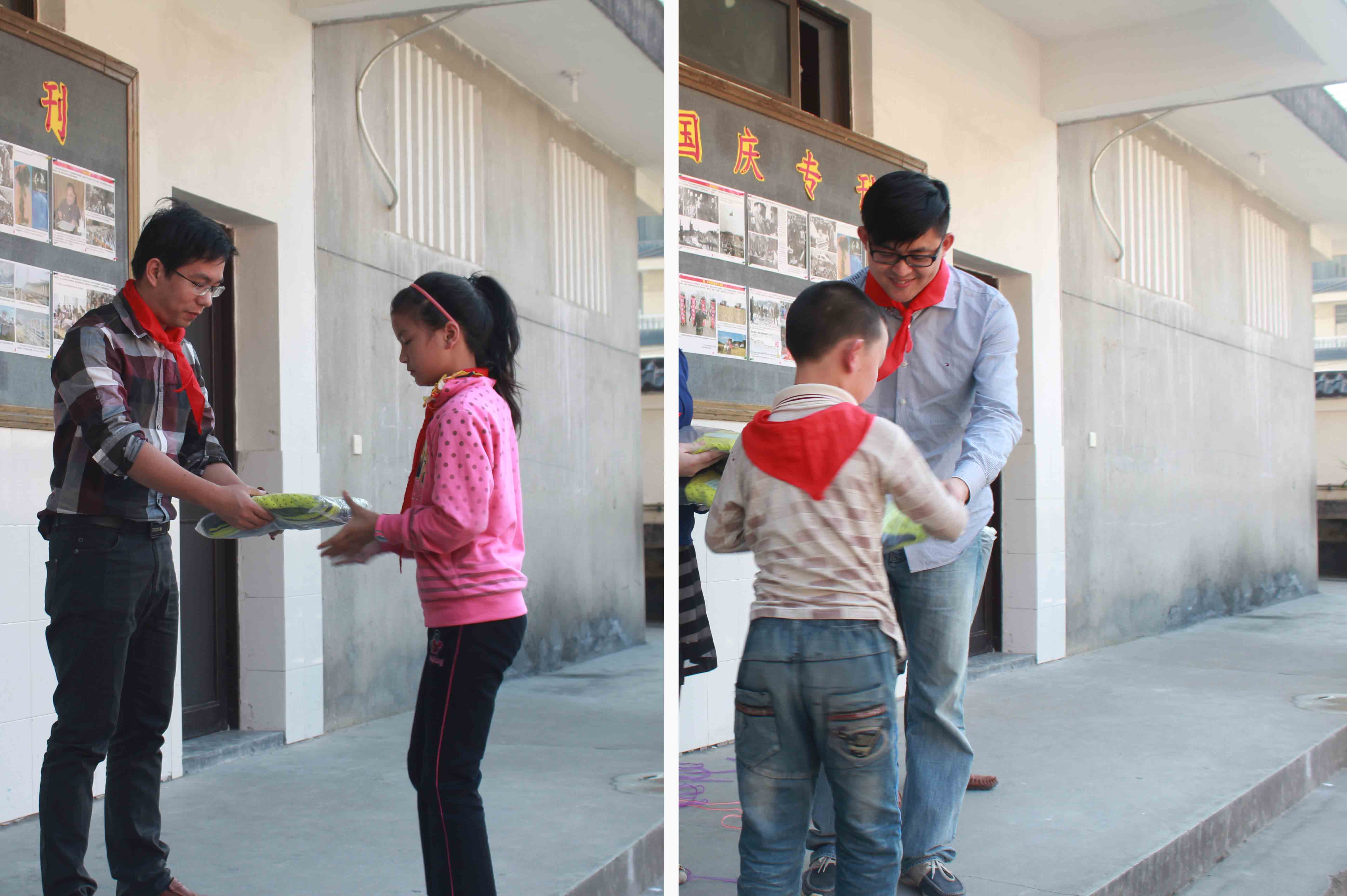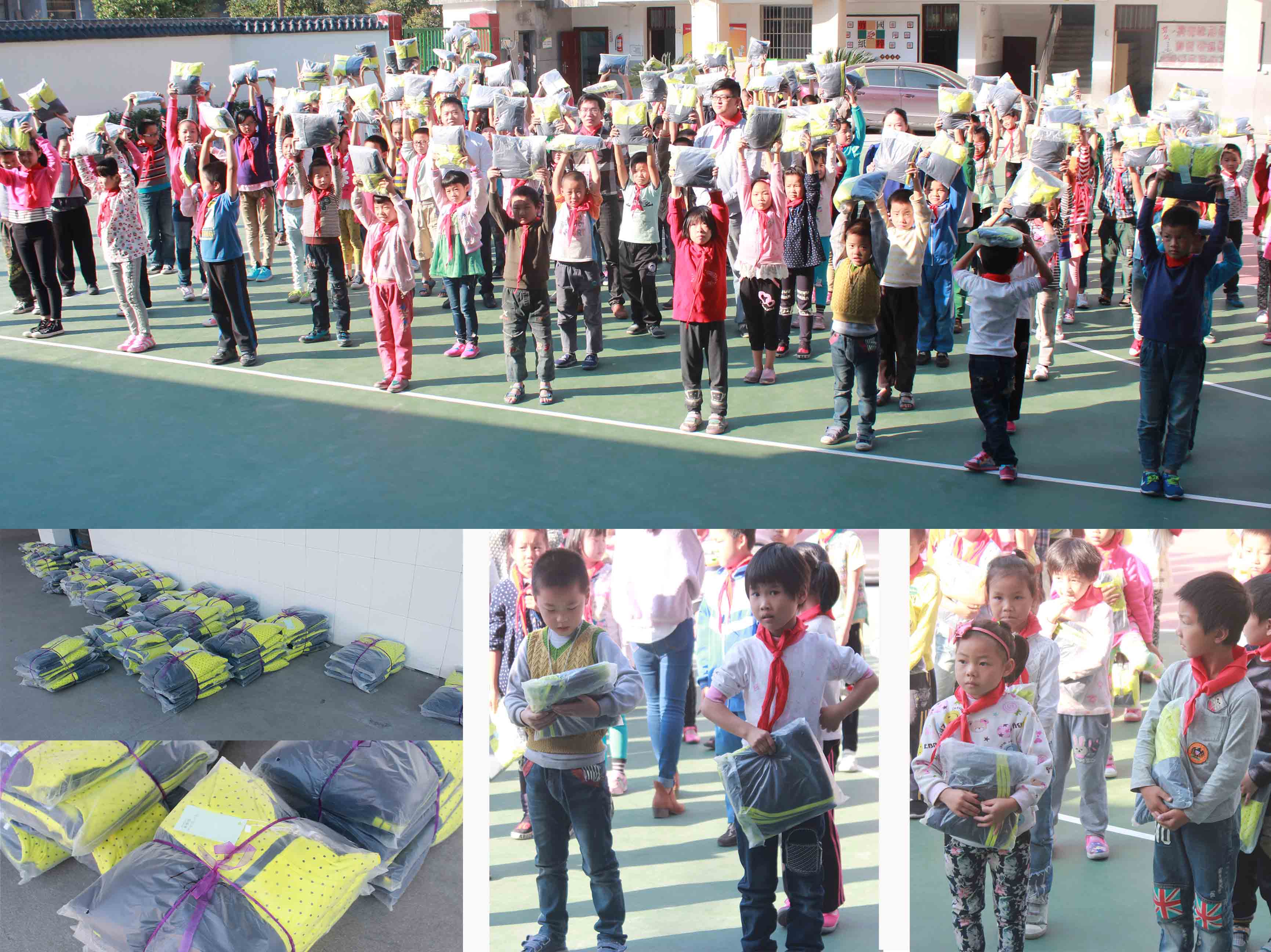 校服捐赠仪式开始前,六年级的学生代表为我们系上了鲜艳的红领巾,在我们几人当中告别红领巾的岁月少则也已有8、9年,多则已近20余年,然而在系上红领巾的那一刻那种久违的情愫仍会涌上心头,自豪、喜悦、激动还有怀念。同样的,当这群孩子们从我们手中接过校服的时候,我们从他们的眼中看到了更多的情感涌动:憧憬、好奇、期待、喜悦。这群淳朴热情的孩子们用他们那真诚的笑容,毫无掩饰的表达了他们对校服的喜爱,却也流露出了他们曾经对校服的渴望之情。