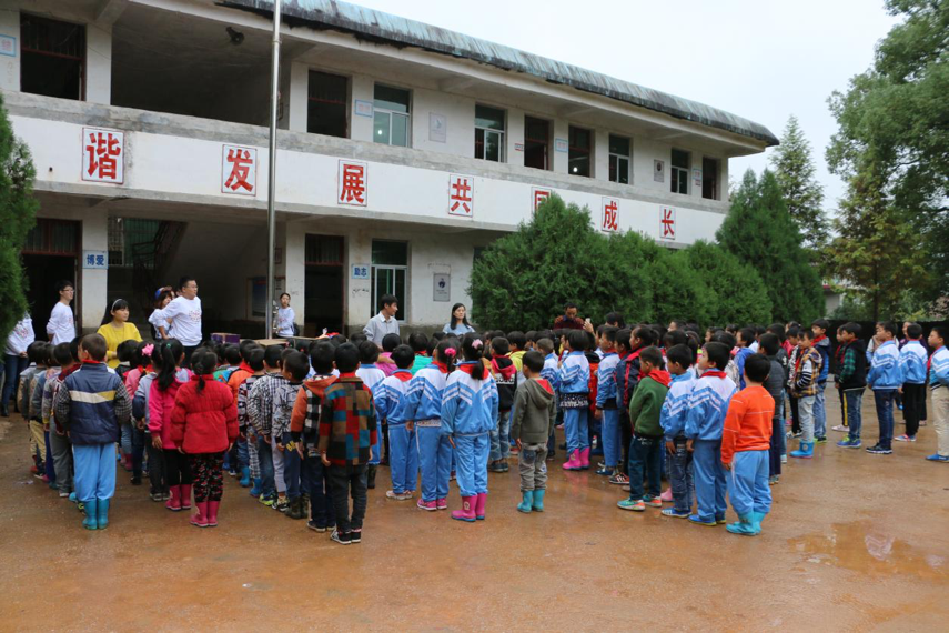 21日早上8点30分,我们一行人兵分两路,在学校老师的引领下分别前往两所学校。一路上飘着丝丝小雨,山间小路也因此有些泥泞打滑,但这丝毫阻碍不了我们的热情。