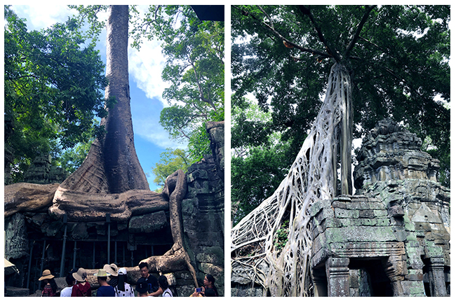 这里密密麻麻的树根如巨蟒,紧紧缠住它们所能抓住的一切,与古庙纠缠千年,直到成为一体,形成独特的“树包屋“景观。