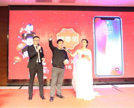 年会当然少不了抽奖的环节。iPhone X,戴森吸尘器、吹风机,统统收入囊中。