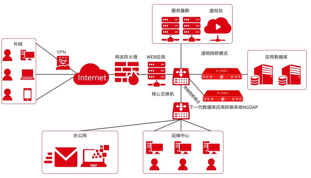 数据安全存在太多的不确定因素,传统安全设备只能防护已知威胁,因而安全防护的关键应在于对已知和未知威胁作出高效、及时、精准的预警和阻断。帕拉迪推出的数据库安全防护方案,能够解决数据库不同层面的安全问题。